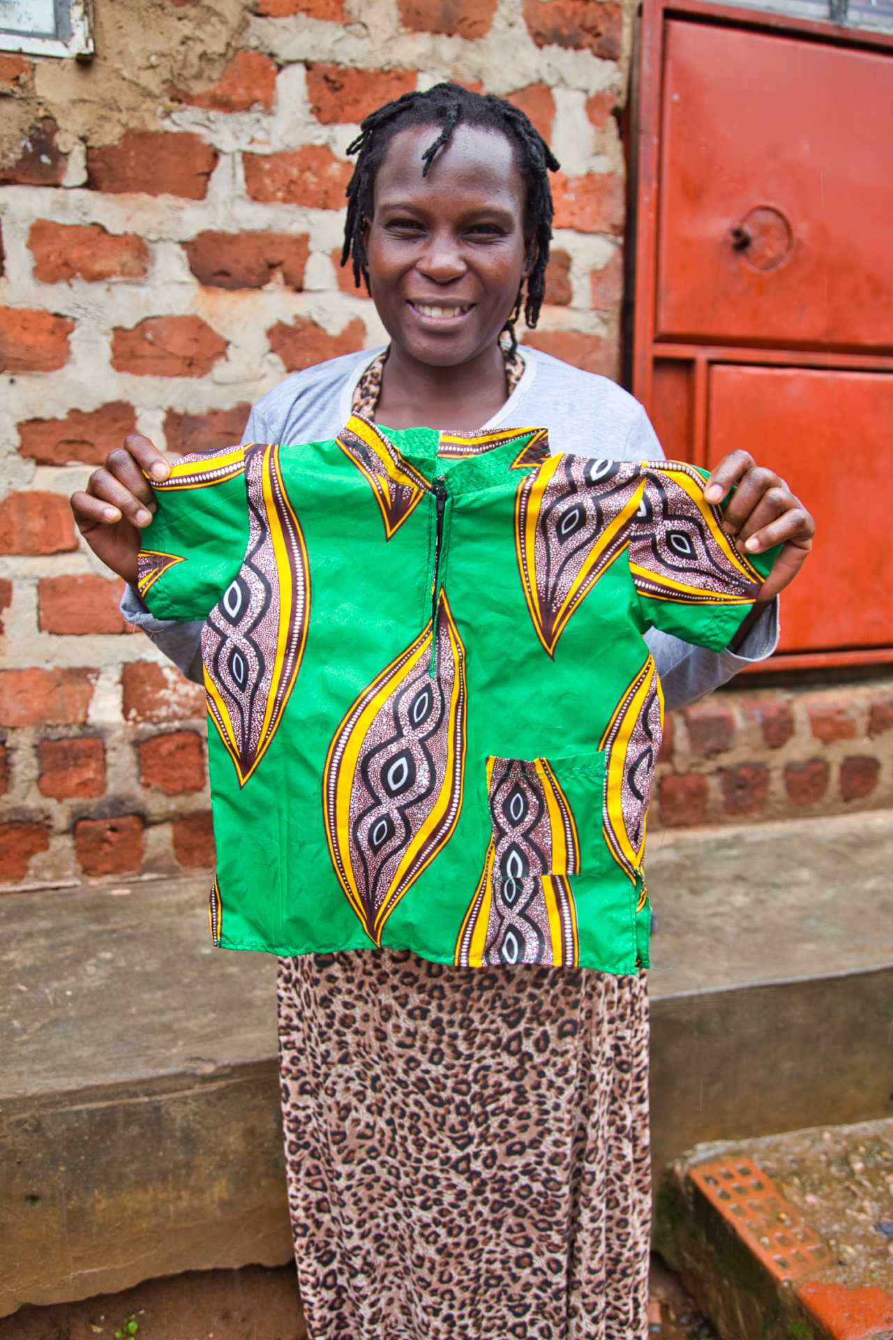 Further discussion with Stellah revealed her desire to sew, so Arise promised that if she was able to make her hocking business work that we would also help with sewing lessons and eventually a sewing machine. Today, Stellah is sewing beautiful children’s clothes on her own sewing machine as she was very diligent and successful with her hocking business.